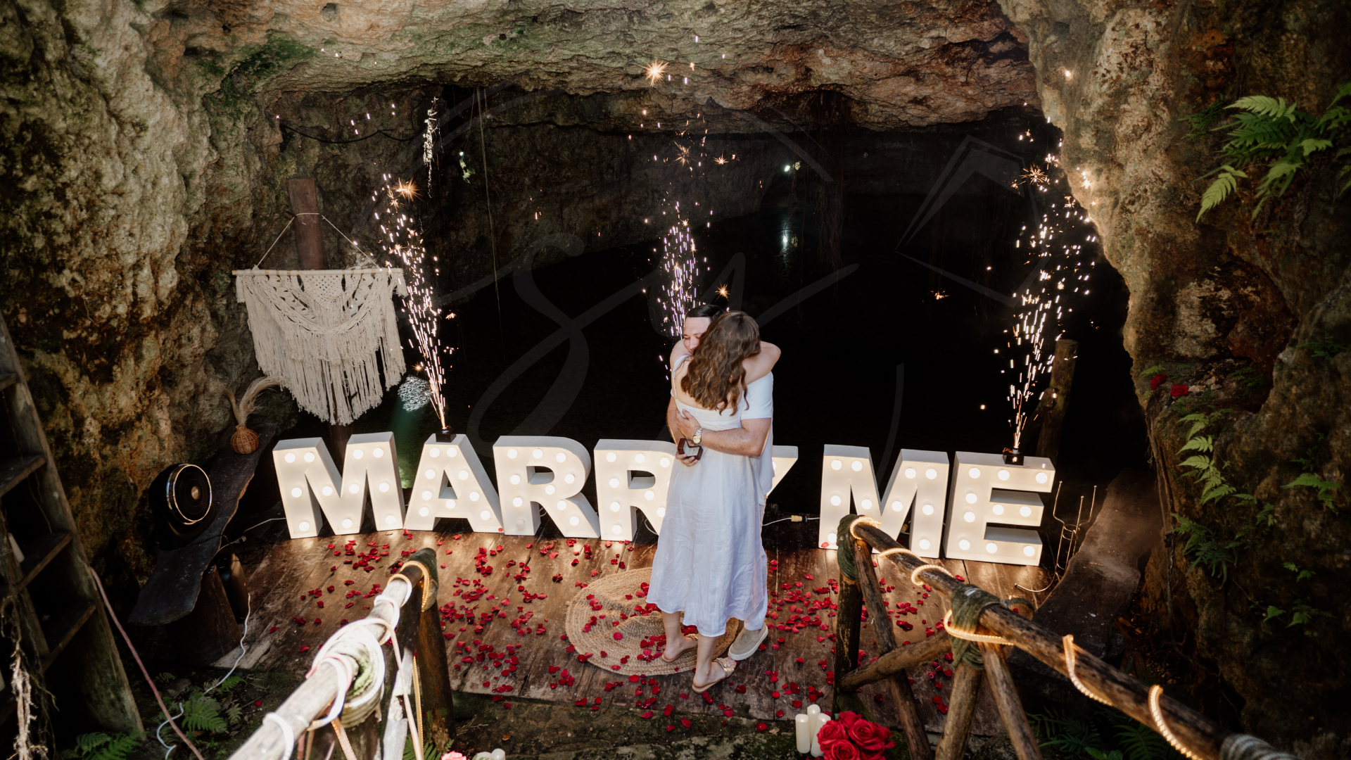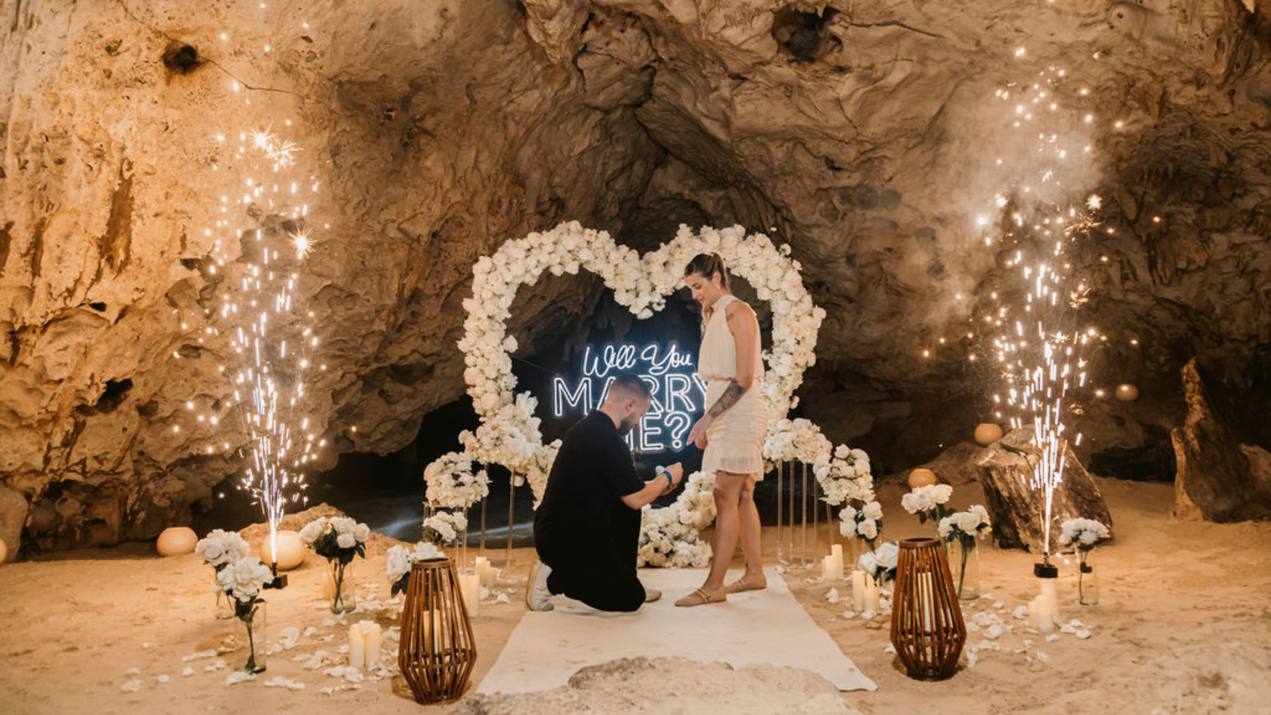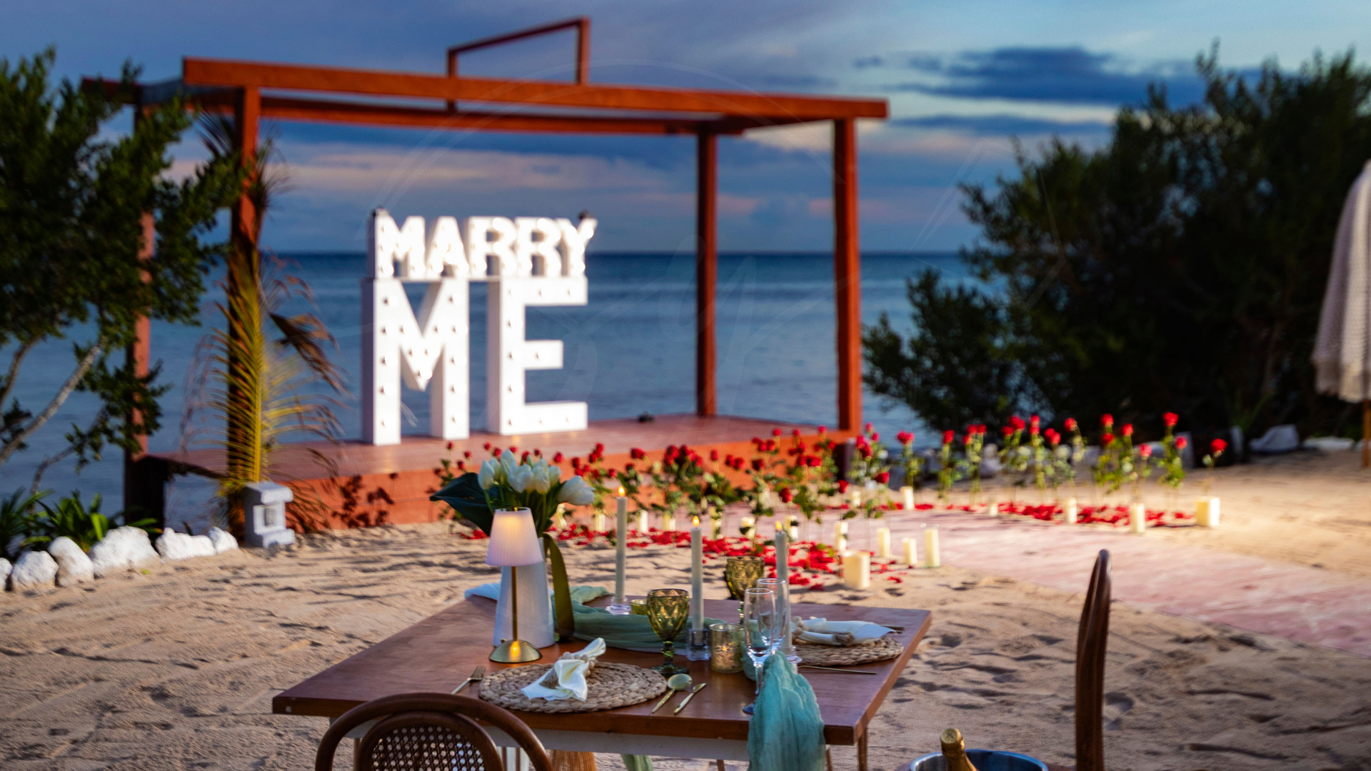 Somos expertos en proposal en los escenarios más hermosos del Caribe Mexicano. Desde una pedida de mano en la playa, un rooftop proposal con vista a la rueda de Cancún, hasta un cenote proposal lleno de magia natural… diseñamos cada detalle para que tu momento sea inolvidable.
