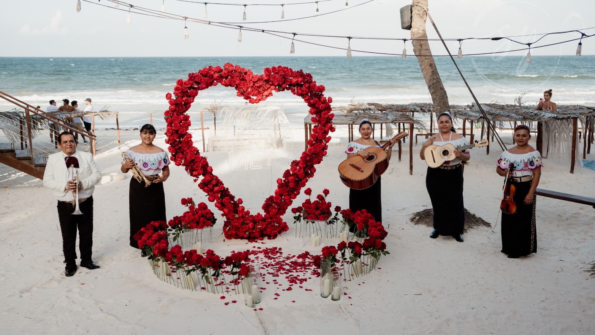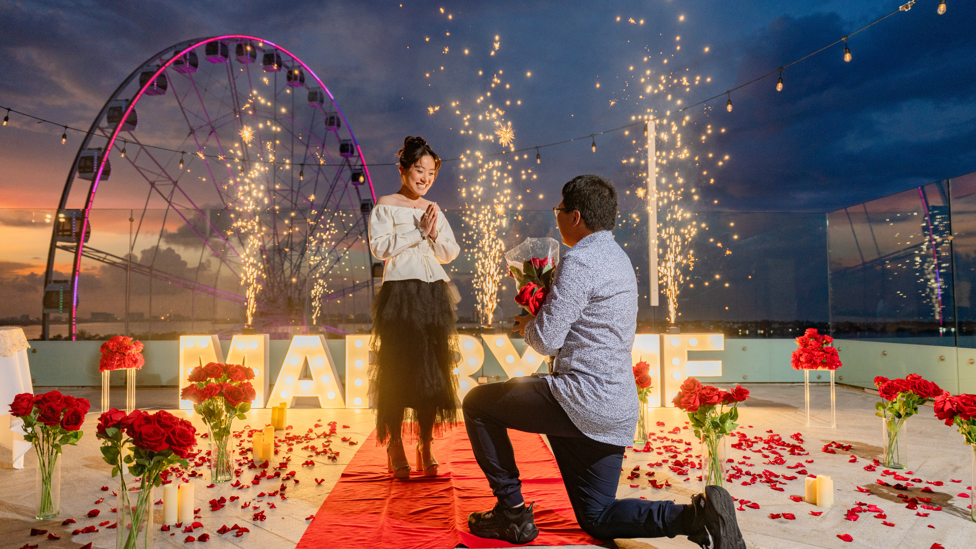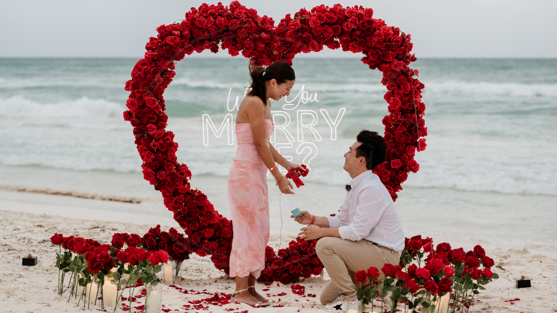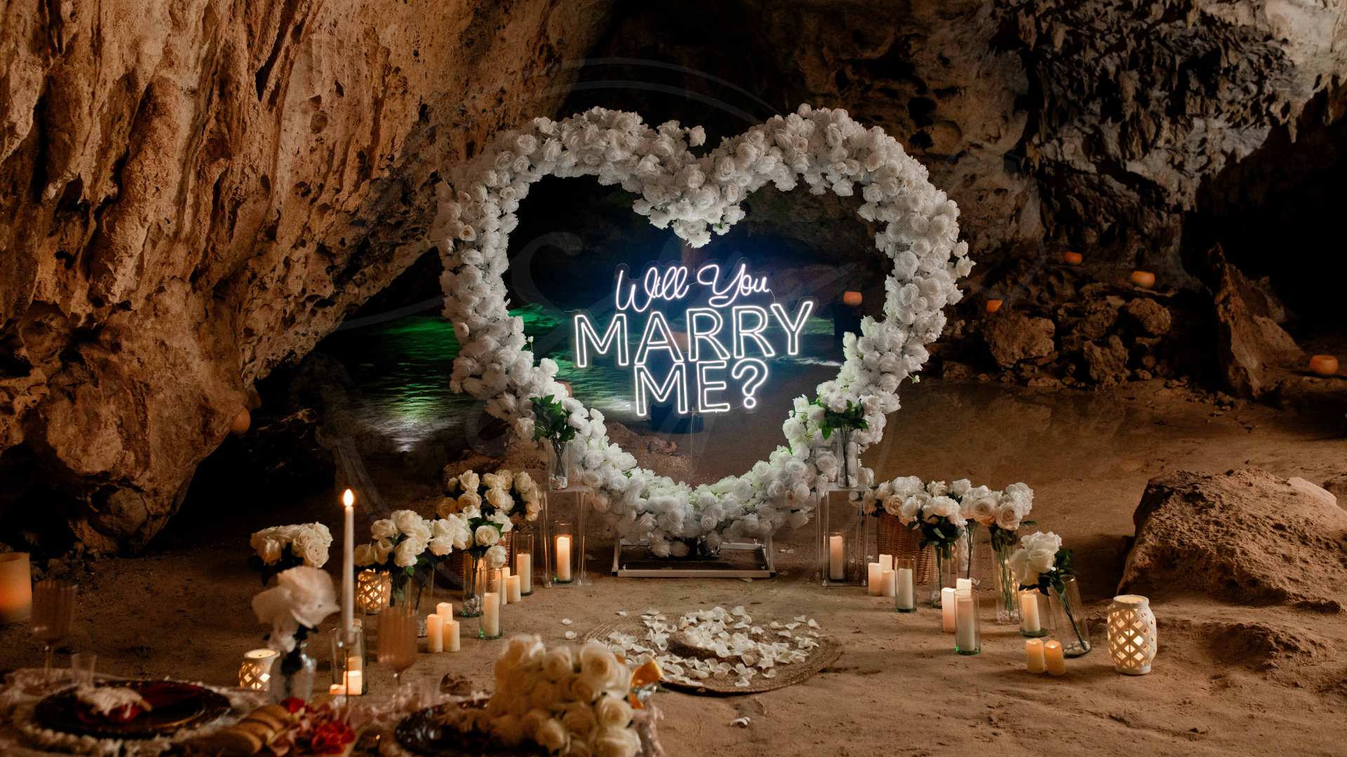 Somos expertos en proposal en los escenarios más hermosos del Caribe Mexicano. Desde una pedida de mano en la playa, un rooftop proposal con vista a la rueda de Cancún, hasta un cenote proposal lleno de magia natural… diseñamos cada detalle para que tu momento sea inolvidable.